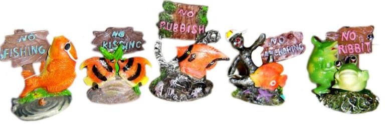 Δώστε στυλ στο σπίτι των ψαριών σας. Διάφορες φιγούρες με επιγραφές.